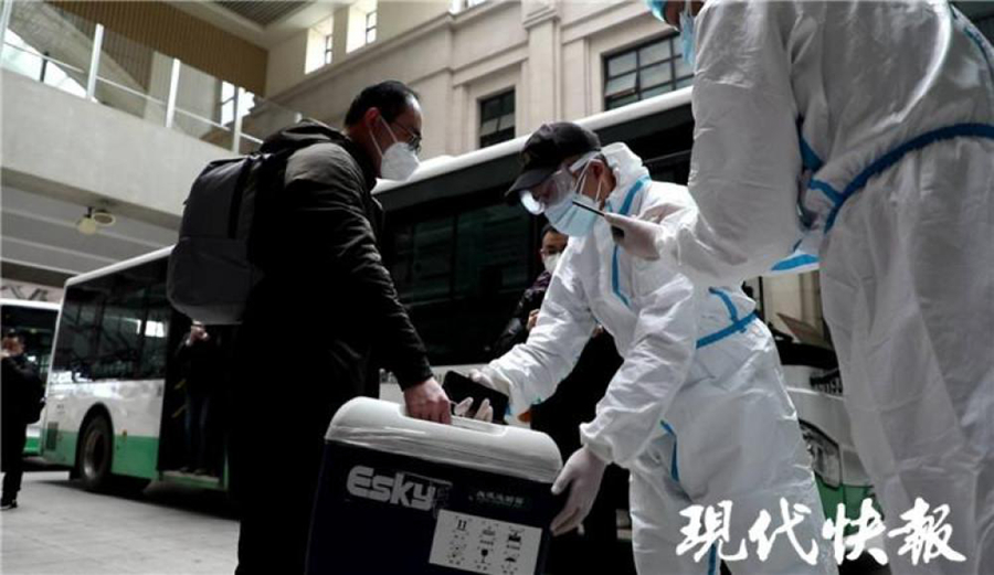 2 月 24 日下午 1 點 10 分,第 11 批江蘇援武漢醫(yī)療隊 31 人抵達武漢,他們將對新冠肺炎患者和一線醫(yī)護人員展開心理疏導(dǎo)。此外,他們還肩負著一項重要使命——來自江蘇的 3000 毫升康復(fù)者血漿,也隨隊運抵湖北。