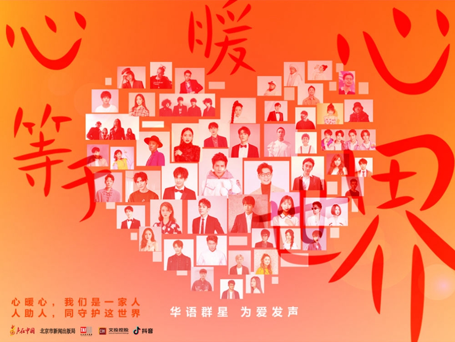 《心暖心等于世界》由新華社“聲在中國(guó)”、太合音樂集團(tuán)等多家單位共同出品,集結(jié)大張偉、品冠、劉惜君、阿云嘎等70位志愿者共同完成,用溫暖的歌聲向一線醫(yī)護(hù)工作者致敬,為努力抗擊疫情的每個(gè)人加油。心暖心溫暖人間,人助人守護(hù)世界。