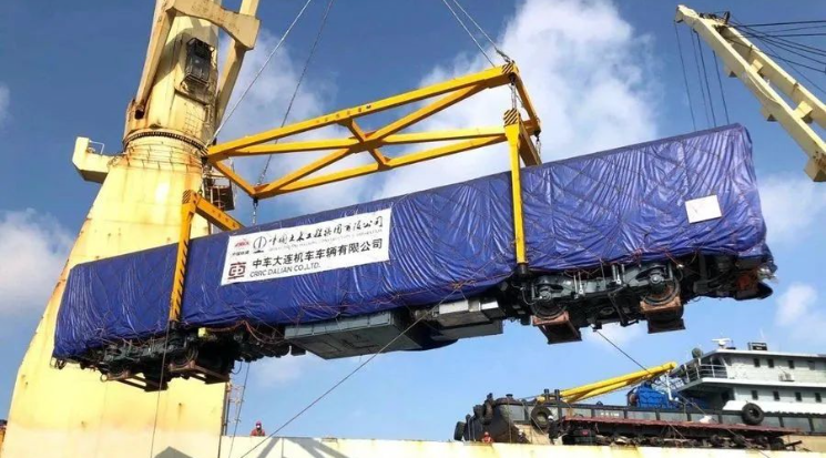 ▲尼日利亞阿布賈內(nèi)燃動(dòng)車(chē)組裝船啟運(yùn)