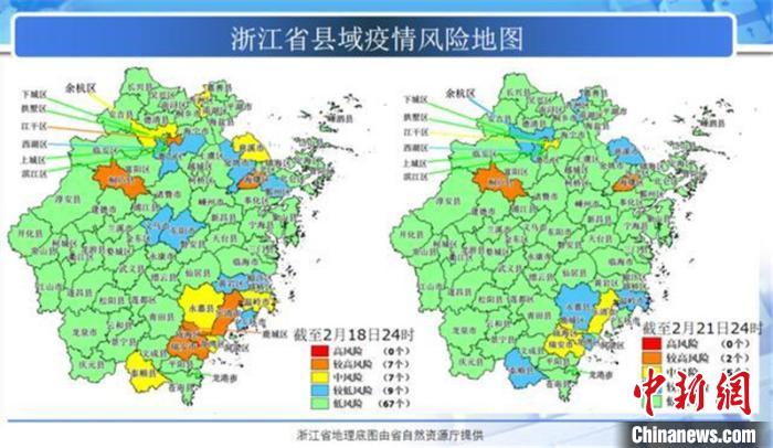 在2月10日舉行的浙江省新冠肺炎疫情防控工作新聞發(fā)布會上,該省衛(wèi)生健康委副主任孫黎明首次將一張布有五種色彩的浙江地圖公示于眾。