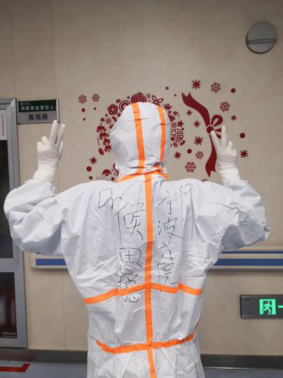 屠應(yīng)超收到侯思聰發(fā)來的穿上防護(hù)服的照片。受訪者供圖