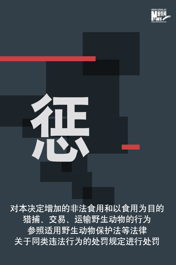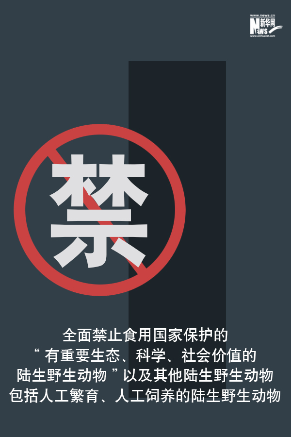 2月24日,十三屆全國(guó)人大常委會(huì)第十六次會(huì)議表決通過(guò)關(guān)于全面禁止非法野生動(dòng)物交易、革除濫食野生動(dòng)物陋習(xí)、切實(shí)保障人民群眾生命健康安全的決定。