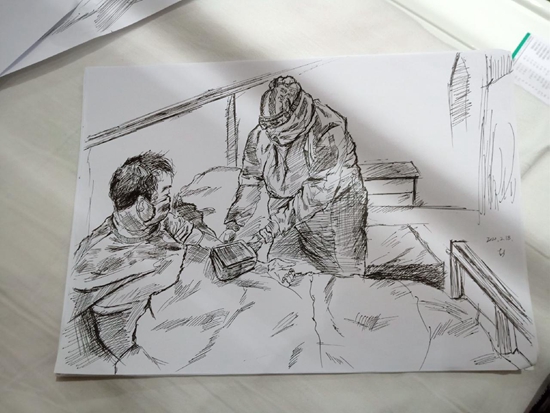 彭昕燁在方艙醫(yī)院所作的速寫 圖片由受訪者提供