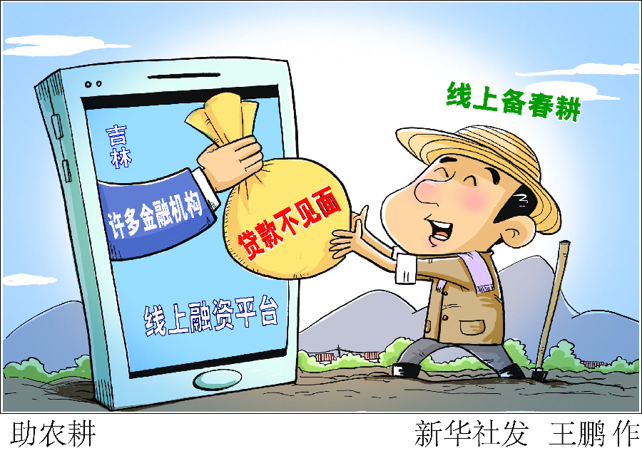 漫畫:助農(nóng)耕 一邊是為了疫情防控盡量少出門,一邊是農(nóng)時不等人,急需貸款流轉(zhuǎn)土地、購買農(nóng)資,如此“兩難”怎么解?在吉林省,許多金融機構(gòu)建設(shè)了線上融資平臺,農(nóng)民足不出戶就能用手機辦理貸款。 新華社發(fā) 王鵬 作