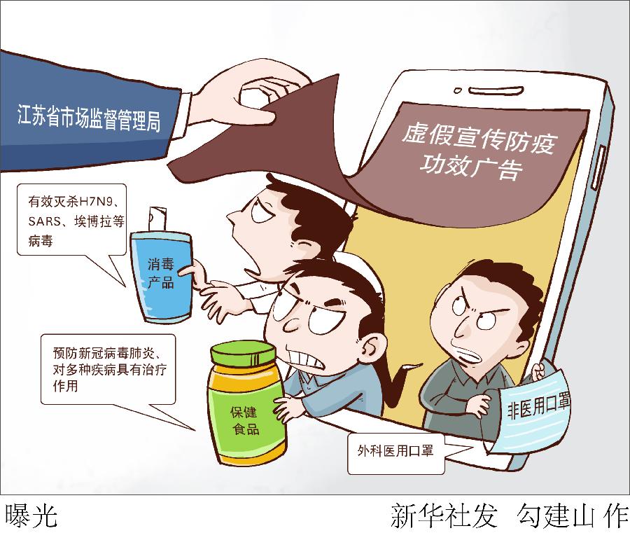 新華社南京2月27日電(記者鄭生竹)27日,江蘇省市場監(jiān)督管理局公布一批虛假宣傳防疫功效廣告案件。這些案件顯示,一些不法商家搭上預防新冠肺炎的順風車,夸大產(chǎn)品功效,誤導消費者購買使用。
