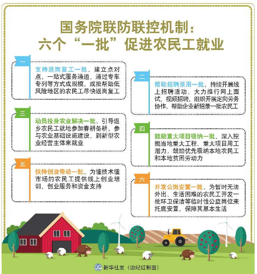 三是動員投身農(nóng)業(yè)解決一批,引導(dǎo)返鄉(xiāng)農(nóng)民工就地參加春耕備耕,參與農(nóng)業(yè)基礎(chǔ)設(shè)施建設(shè),到新型農(nóng)業(yè)經(jīng)營主體來就業(yè);
