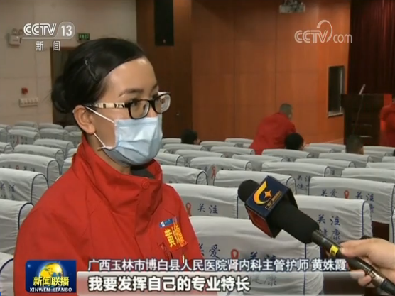 廣西玉林市博白縣人民醫(yī)院腎內(nèi)科主管護(hù)師 黃姝霞:我要發(fā)揮自己的專業(yè)特長,全力以赴救治患者,為打贏湖北保衛(wèi)戰(zhàn)貢獻(xiàn)自己的一份力量。