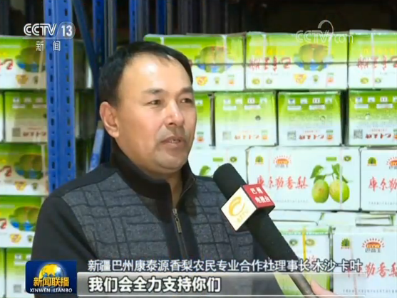 新疆巴州康泰源香梨農(nóng)民專業(yè)合作社理事長 木沙?卡葉:我們與湖北心連心,我們會(huì)全力支持你們。
