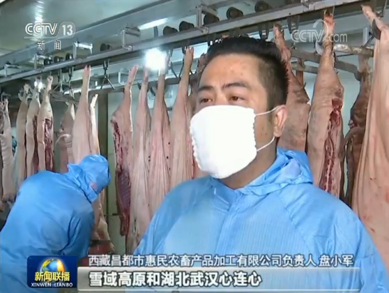 西藏昌都市惠民農(nóng)畜產(chǎn)品加工有限公司負(fù)責(zé)人 盤小軍:雪域高原和湖北武漢心連心,希望我們共同努力,早日戰(zhàn)勝疫情。
