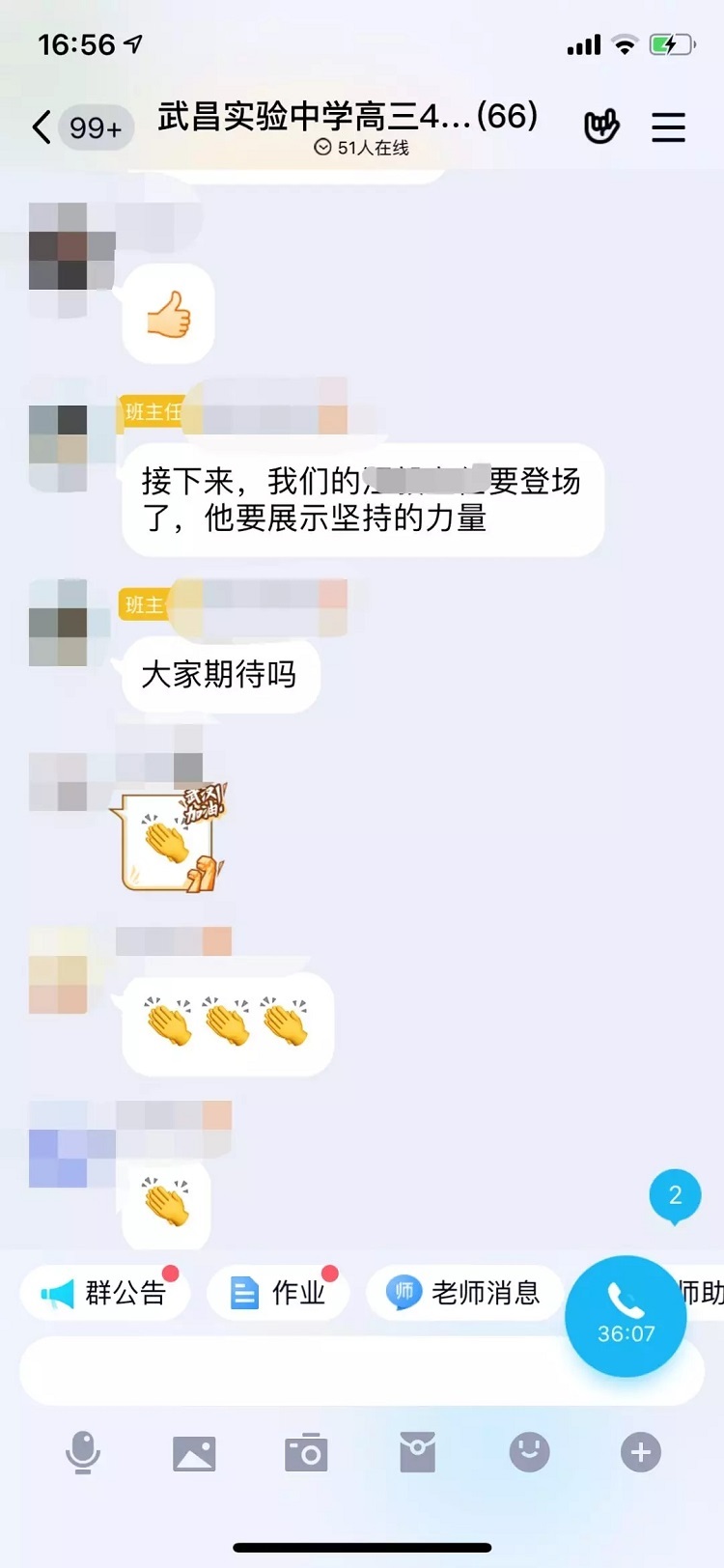 高三學(xué)生劉晨曦:“下午4點(diǎn)到4點(diǎn)50分,我們利用班會(huì)課開展了誓師大會(huì),由于技術(shù)的原因,我們是通過放PPT視頻以及開語音的方式來開展的。(環(huán)節(jié))最開始是我們班主任講話?!?/p>