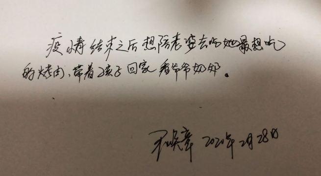 ——“你今天感覺怎么樣?你在那邊加油,然后早點(diǎn)回來嘛?!?/p>