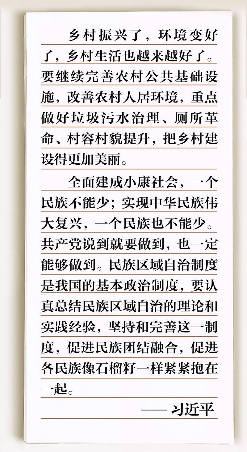 習(xí)近平總書(shū)記指出:“各族人民親如一家,是中華民族偉大復(fù)興必定要實(shí)現(xiàn)的根本保證?!瘪R鞍山村脫貧攻堅(jiān)動(dòng)力不竭,村民生活蒸蒸日上,既源于黨和政府的好政策,更是因?yàn)楦髯迦罕娡耐?、同心同向。這也啟示我們:56個(gè)民族攜手同行,像石榴籽一樣緊緊抱在一起,鑄牢中華民族共同體意識(shí),就能形成勇往直前、無(wú)堅(jiān)不摧的強(qiáng)大力量。