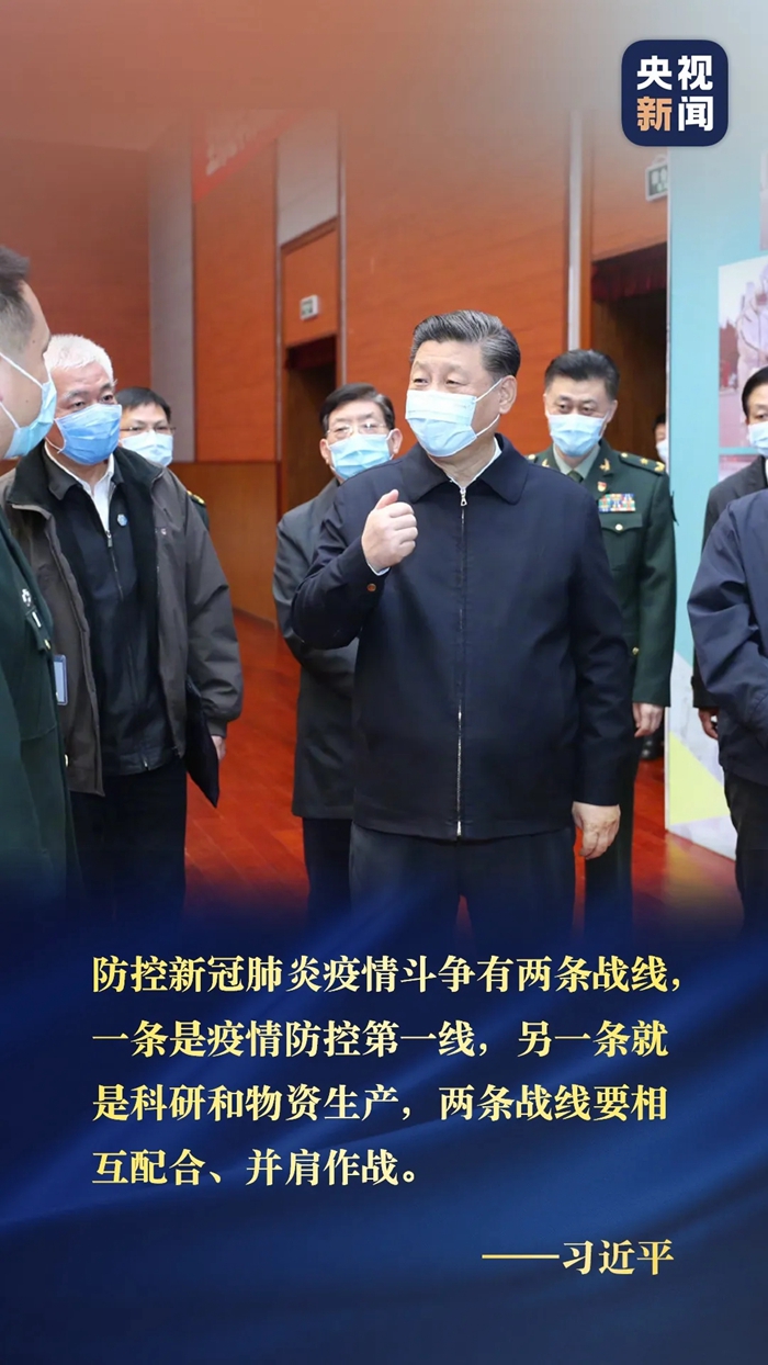 防控新冠肺炎疫情斗爭(zhēng)有兩條戰(zhàn)線,一條是疫情防控第一線,另一條就是科研和物資生產(chǎn),兩條戰(zhàn)線要相互配合、并肩作戰(zhàn)。
