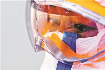 25℃的室溫,再加上密閉的防護服,王兆娥能感覺到身上的汗在往下淌,護目鏡上已經(jīng)起了一層霧