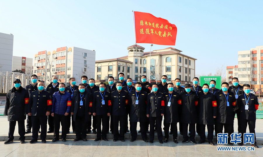 1月31日,青島西海岸新區(qū)抗擊疫情退役軍人突擊隊(duì)在隱珠文化廣場進(jìn)行誓師動(dòng)員。 新華社發(fā)(于長波 攝)