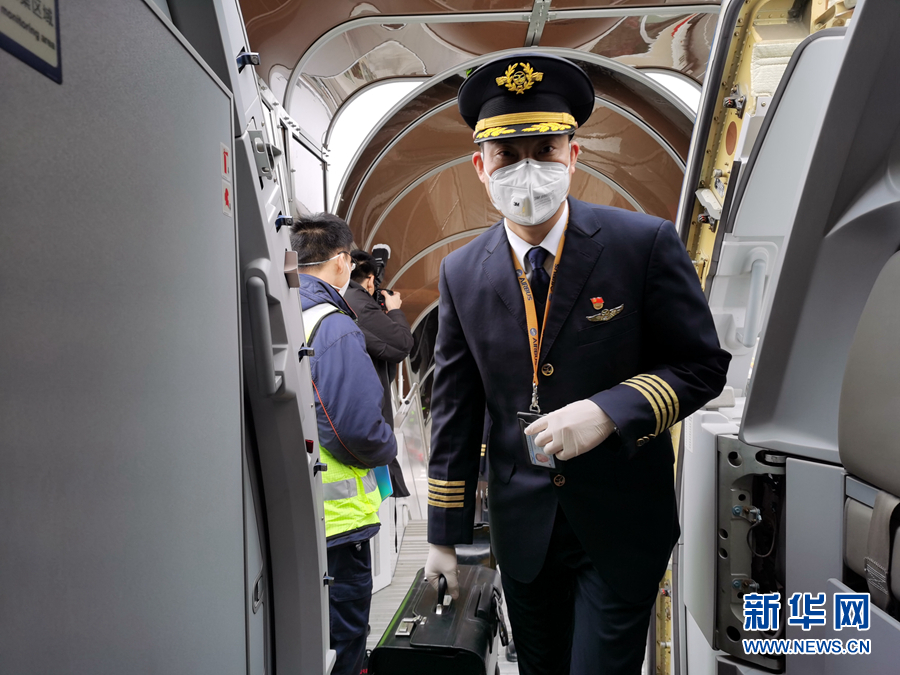 2月2日,全國“最美退役軍人”劉傳健主動(dòng)申請(qǐng)執(zhí)飛運(yùn)輸任務(wù),護(hù)送四川第三批支援湖北醫(yī)療隊(duì)醫(yī)護(hù)人員和物資赴武漢。 新華社發(fā)