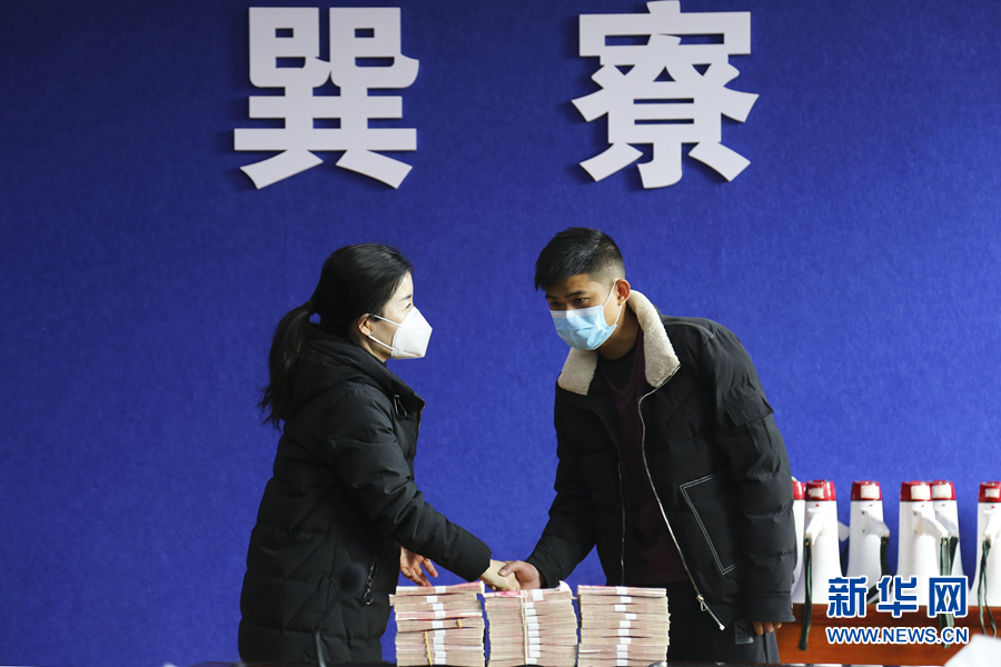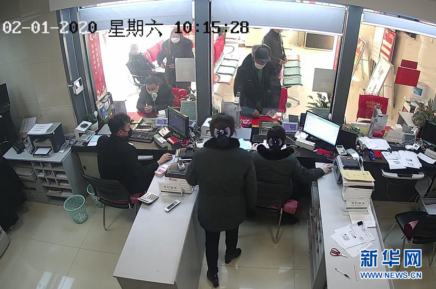2月1日,在江蘇省宿遷市郵政儲(chǔ)蓄銀行泗洪上塘鎮(zhèn)支行,王玉齊老人以“退伍老兵”的名義向武漢紅十字會(huì)捐款9900元。 新華社發(fā)(截屏照片)