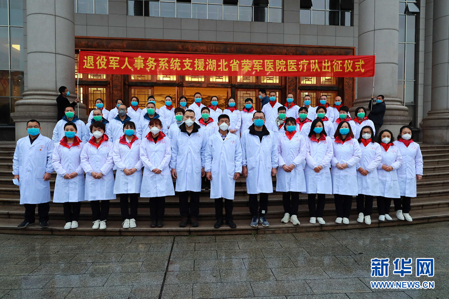 2月11日,退役軍人事務(wù)部組建首支醫(yī)療隊(duì)馳援湖北省榮軍醫(yī)院。這是出征儀式現(xiàn)場。新華社發(fā)(曹舒昊 攝)