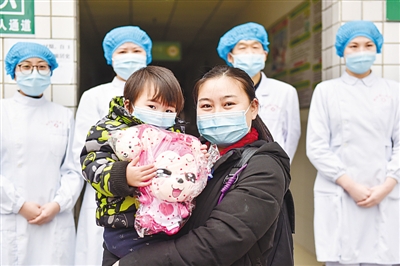 2月14日,一名新冠肺炎患兒從湖北省秭歸縣人民醫(yī)院感染性疾病科治愈出院。王家滿攝/光明圖片