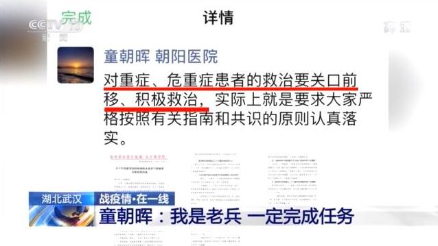 關(guān)口前移,就是童朝暉和專家們經(jīng)過(guò)臨床觀察和研討之后,提出的重要診療建議,已經(jīng)納入新冠肺炎診療方案。
