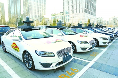 去年年底,在北京經(jīng)濟(jì)技術(shù)開發(fā)區(qū),準(zhǔn)備進(jìn)行自動駕駛載人載物測試的車輛等候出發(fā)。新華社發(fā)