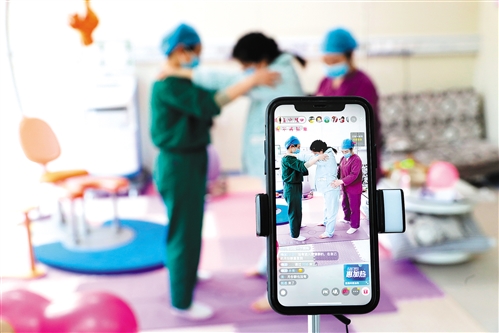 日前,江西撫州東鄉(xiāng)區(qū)人民醫(yī)院孕婦學校改線下上課為線上授課,醫(yī)生通過直播為孕媽媽們答疑解惑。 何江華攝(中經(jīng)視覺)