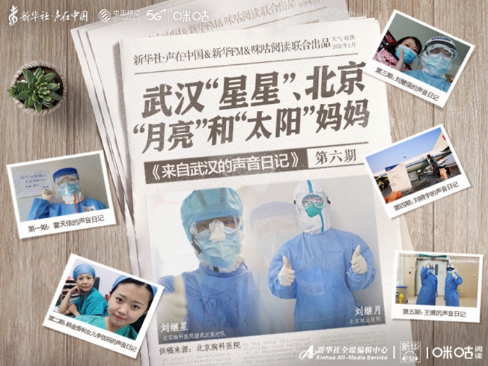點(diǎn)擊收聽來自武漢的聲音日記第六期。今天講述這樣的一家人。哥哥叫劉繼星,是北京胸科醫(yī)院援武漢醫(yī)療隊(duì)成員,妹妹叫劉繼月,奮戰(zhàn)在北京地壇醫(yī)院ICU病房。而他們的媽媽也曾是醫(yī)務(wù)人員,退休前就職于北京地壇醫(yī)院順義院區(qū),參加過抗擊非典疫情。一起來聽他們的故事。