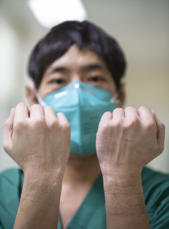 圖為北京地壇醫(yī)院ICU病房工作的劉繼月。