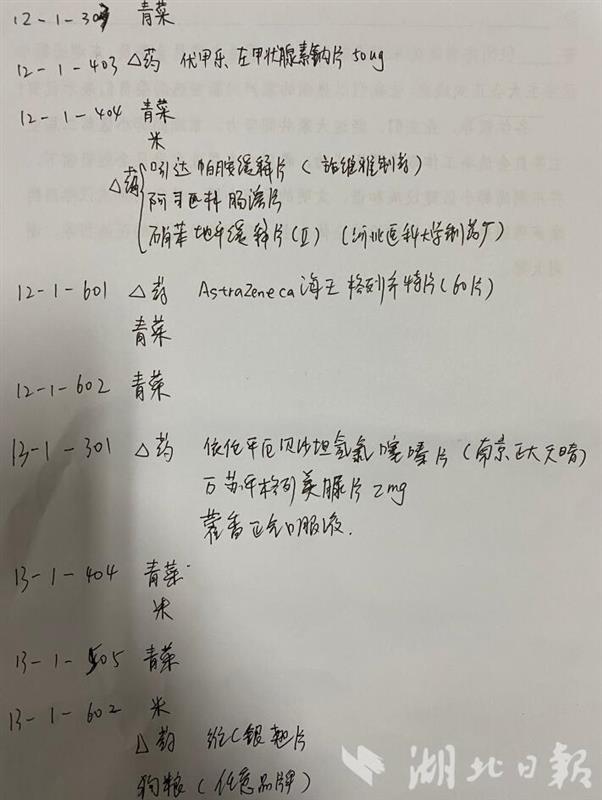 胡俊昊的任務(wù)是排查徐東嘉園10棟至12棟居民的健康情況,共96戶。在前期和本次大排查中,有8位確診病人和20位密切接觸者。他身著可反復(fù)使用的防護(hù)服,毫無(wú)畏懼前去敲門。有一戶居民早早地聽(tīng)到了聲音,提前開(kāi)門,送出一條巧克力:“我家孩子跟你差不多大,現(xiàn)在在火神山,你們都是英雄,辛苦了!”胡俊昊接過(guò)巧克力,感覺(jué)身上更有勁了:“謝謝您,您孩子一定會(huì)平安歸來(lái)。這段時(shí)間,您就把我當(dāng)成自家孩子,有事吩咐別見(jiàn)外!”一趟下來(lái),沒(méi)有排查出居家發(fā)熱人員,但胡俊昊整理了一下筆記本:36戶居民有購(gòu)菜購(gòu)藥需求。隨后,他又忙著幫居民逐一買菜、買藥。