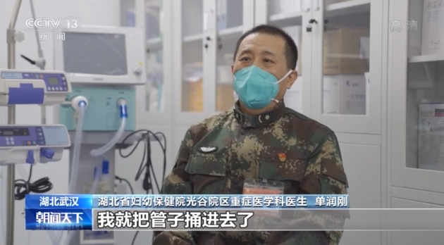 湖北省婦幼保健院光谷院區(qū)重癥醫(yī)學(xué)科醫(yī)生、危重癥患者救治突擊隊(duì)隊(duì)員 單潤剛:我們在吸氣的時(shí)候,聲門會(huì)變大,變大那一瞬間我就把管子插進(jìn)去了,也就零點(diǎn)幾秒,不到一秒鐘。