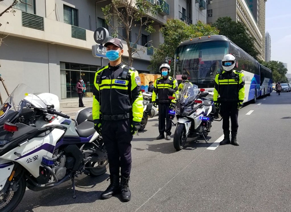 車輛沿途經(jīng)過的主要路口均有民警輔警現(xiàn)場值守