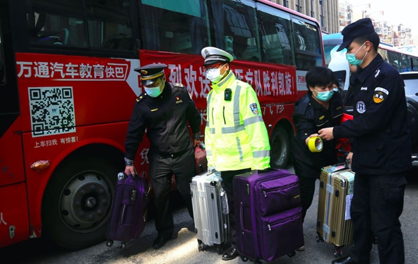 一大早,武昌區(qū)交通大隊副大隊長熊志軍帶領(lǐng)戰(zhàn)友趕到青海援鄂醫(yī)療隊駐地。送醫(yī)療隊到機場的有5輛大巴車,由于駐地酒店入口較小,需要提前到達現(xiàn)場,逐一清理路邊停放的車輛。