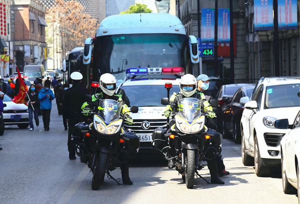 武漢交警根據(jù)援漢醫(yī)療隊返程時間、線路等具體安排,制定精細化工作方案,做好酒店駐地、隔離點周邊道路交通秩序維護;提前準(zhǔn)備應(yīng)急處置力量,如遇車輛故障或發(fā)生事故,確保警力第一時間趕赴現(xiàn)場、第一時間快速處置、第一時間安全轉(zhuǎn)移。