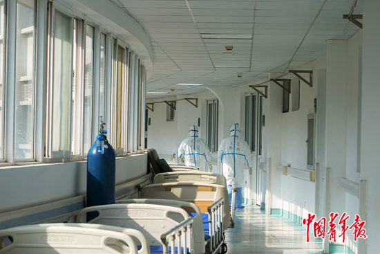 病區(qū)里的常態(tài)是5個(gè)醫(yī)生、十四五個(gè)護(hù)士,管理四五十個(gè)病人。醫(yī)院里的保潔人員沒了,醫(yī)療垃圾、病人丟出來的東西、病人的吃喝拉撒,都要護(hù)士負(fù)責(zé)。醫(yī)院做行政工作的人白天去半污染區(qū)給病人送飯,夜里有人還要去拉從各地寄來的防護(hù)物資,“去慢了別人就拿走了”。