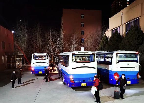為便于調(diào)度員安全往返調(diào)度指揮中心,隔離點安排3輛大客車,從6時30分第一班車發(fā)出至20時不間斷接送。