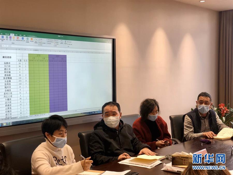 申洲國際集團(tuán)計(jì)劃3月26日包車前往湖北接1000多名員工返崗,集團(tuán)常務(wù)副總經(jīng)理陳忠靜(左二)加緊協(xié)調(diào)布置(3月25日攝)。 新華社發(fā)