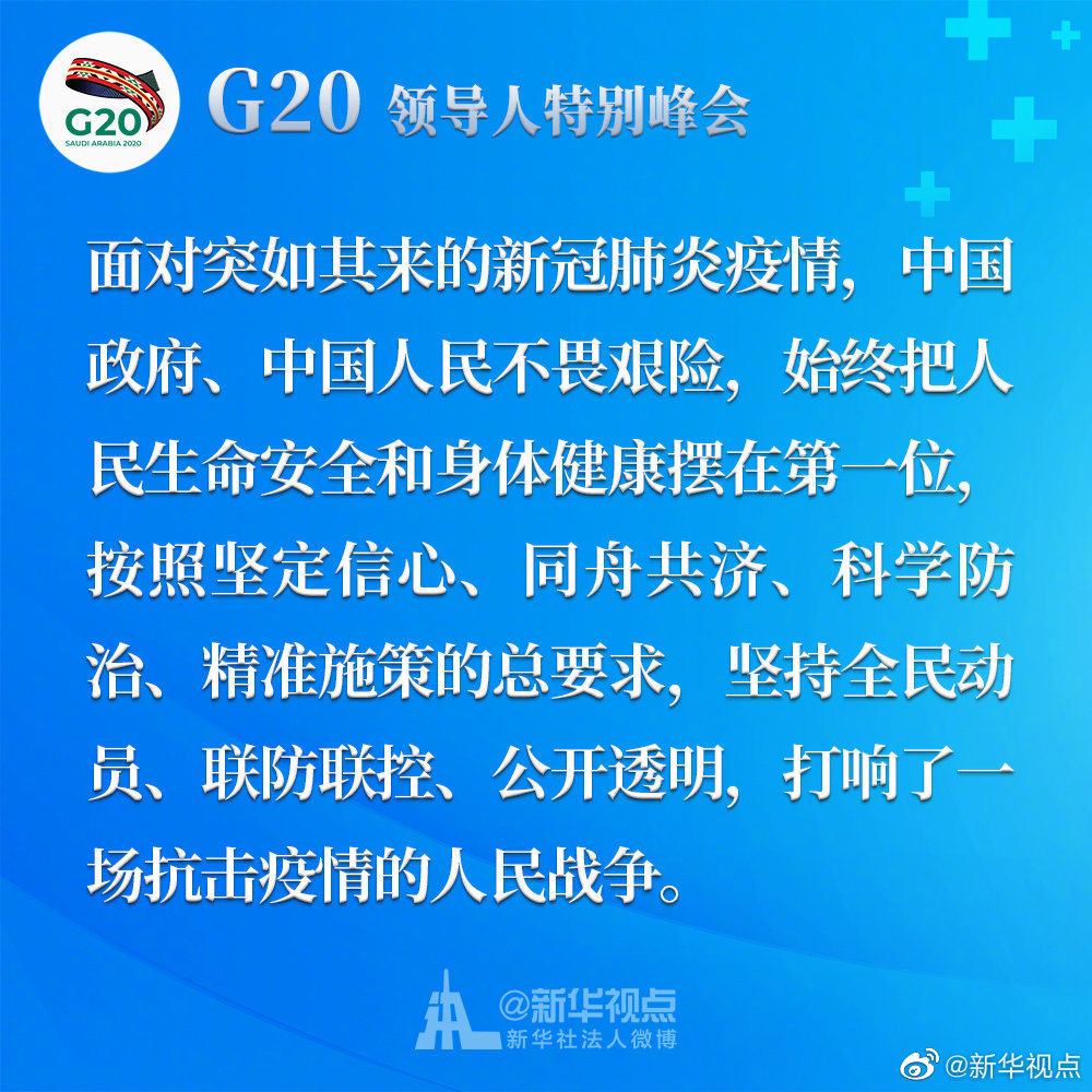 習近平在二十國集團領導人應對新冠肺炎特別峰會上重要講話金句