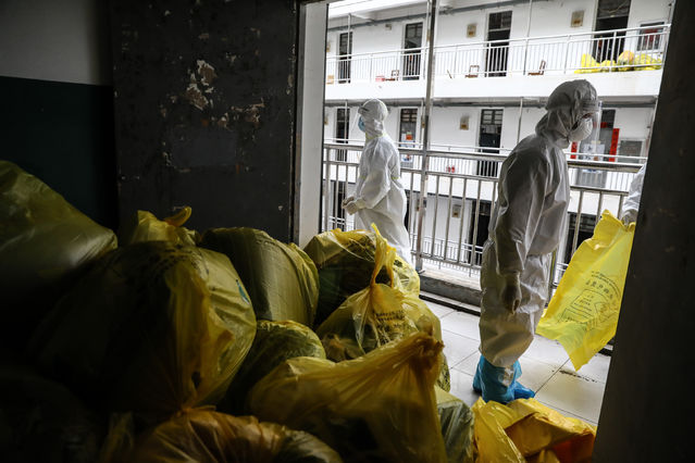 3月27日,武漢軟件工程職業(yè)學院康復驛站,工作人員正在清理隔離觀察者房間留下的物品,之后宿舍將進行全面消殺。武軟康復驛站在2月25日投入使用,共分批接納854名康復隔離人員。新冠肺炎治愈出院患者在此實施為期14天免費的康復隔離和醫(yī)學觀察,達到醫(yī)學標準后,才能解除隔離返家。中青報·中青網記者 趙迪/攝