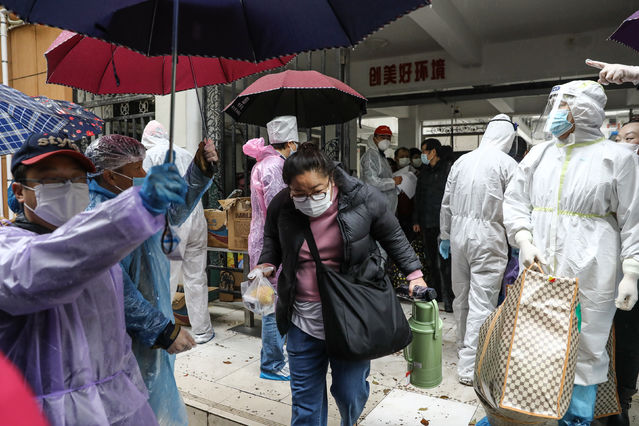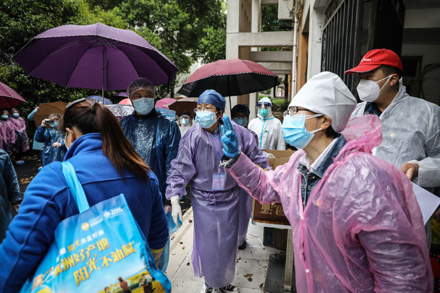 3月27日,武漢軟件工程職業(yè)學院康復驛站,冒雨離開的康復隔離觀察者。學校為每個康復人員送上了餐飲包,里面包含了牛奶、蛋黃派、蘋果等食物供路上吃。中青報·中青網記者 趙迪/攝