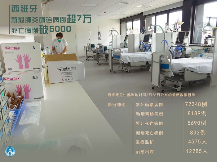 數據顯示,西班牙單日新增新冠肺炎確診病例8189例,累計確診病例已達72248例;單日新增死亡病例832例,累計死亡5690例;目前共有4575人正在重癥監(jiān)護室接受治療,另有12285人治愈出院。