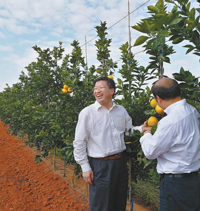 鄧秀新經(jīng)常把科技扶貧比作“四兩撥千斤”。他說:“‘四兩’可以撥‘千斤’,但一定不能代替‘千斤’??茖W(xué)家必須要計(jì)算投入產(chǎn)出比,不但要考慮技術(shù)上可行,更要考慮經(jīng)濟(jì)上可行?!倍嗄陙?,鄧秀新的研究范圍不局限于品種培育、栽培模式創(chuàng)新等純技術(shù)問題,還覆蓋了采后處理、品牌打造及市場營銷等產(chǎn)業(yè)鏈的各個(gè)環(huán)節(jié),支撐了我國柑橘產(chǎn)業(yè)體系建設(shè)。