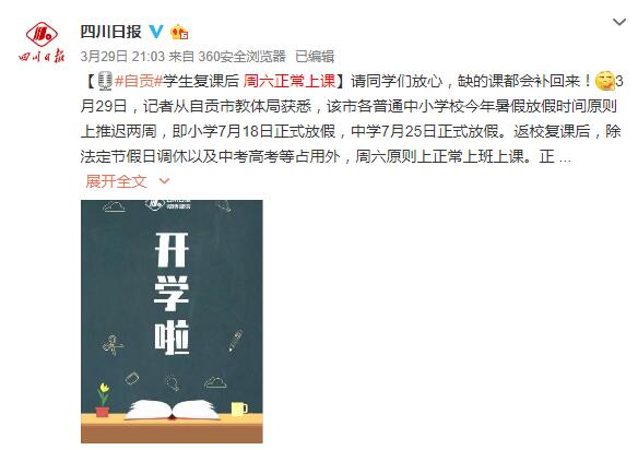 今年2月,四川就曾下發(fā)通知明確:中小學(xué)因延遲開學(xué)耽誤的教學(xué)時間,可通過調(diào)整周末和暑期等方式補齊。