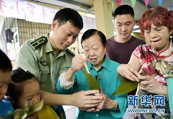 △“田媽媽”與孟召友包粽子過端午。新華網(wǎng)發(fā)(曾理 攝)
