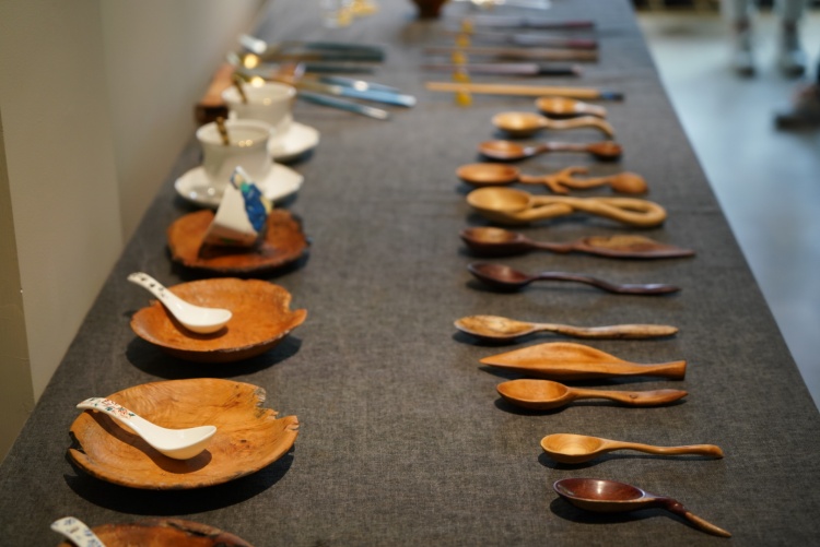 上海浦東新區(qū)唐鎮(zhèn)文化創(chuàng)藝中心內(nèi)的文智工坊創(chuàng)意體驗中心展示的各種勺子和筷子。(上海浦東新區(qū)文產(chǎn)促進中心供圖)