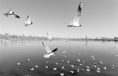 隨著湖泊濕地治理工程推進(jìn),銀川市水域環(huán)境明顯改善,每年冬春季節(jié)都會(huì)迎來(lái)大批候鳥駐足停歇。近日,寧夏銀川市迎來(lái)大批紅嘴鷗。新華社記者 王鵬攝