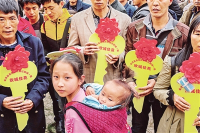 會澤縣易地扶貧搬遷的鄉(xiāng)親們領(lǐng)取會澤新城一期新居鑰匙。