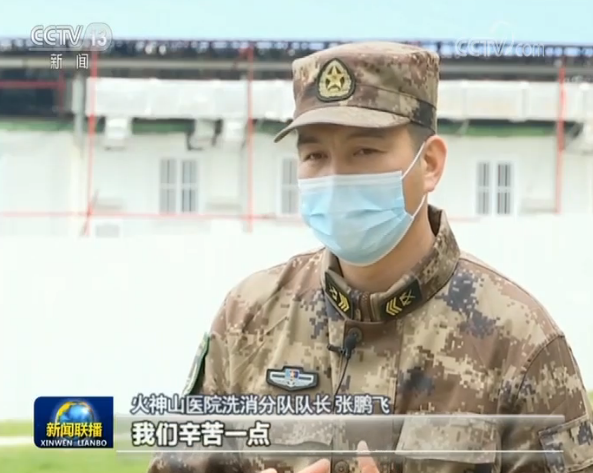 火神山醫(yī)院洗消分隊(duì)隊(duì)長 張鵬飛:我們要保證醫(yī)務(wù)人員安全,我們要保證病區(qū)安全。我們認(rèn)真一點(diǎn),我們負(fù)責(zé)一點(diǎn),我們辛苦一點(diǎn),他們就會(huì)少一絲隱患。