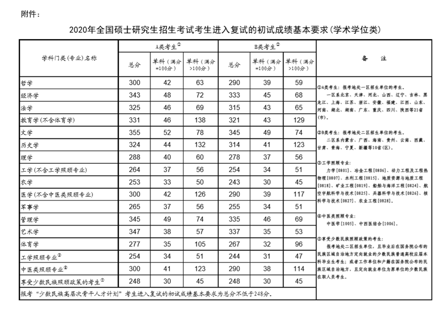 今日,教育部公布《2020年全國碩士研究生招生考試考生進入復試的初試成績基本要求》(國家分數線),并印發(fā)通知,就做好2020年全國碩士研究生復試工作進行部署。