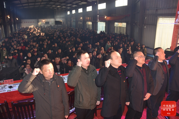 2019年1月,向衛(wèi)煌(前排左一)在雙峰縣井字鎮(zhèn)黨員冬訓大會上重溫入黨誓詞。
