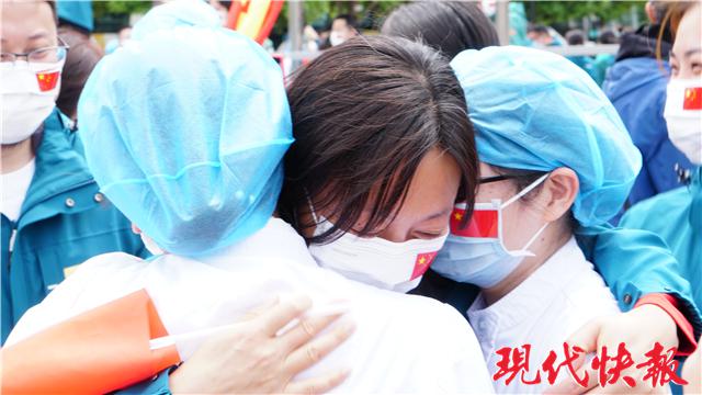 撤離前一天,北京協(xié)和醫(yī)療隊(duì)前往同濟(jì)醫(yī)院中法新城院區(qū)拍攝合影。共同戰(zhàn)疫多日,讓醫(yī)療隊(duì)員與武漢的醫(yī)護(hù)人員結(jié)下深厚友誼。他們互贈(zèng)禮物,約定明年來(lái)武漢看櫻花。臨別時(shí),戰(zhàn)友們抱在一起,留下熱淚。